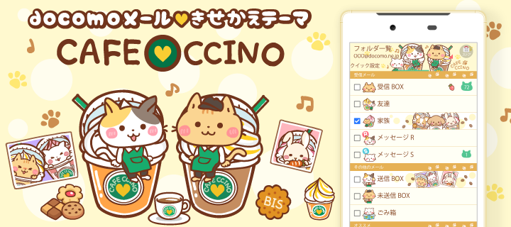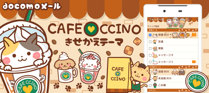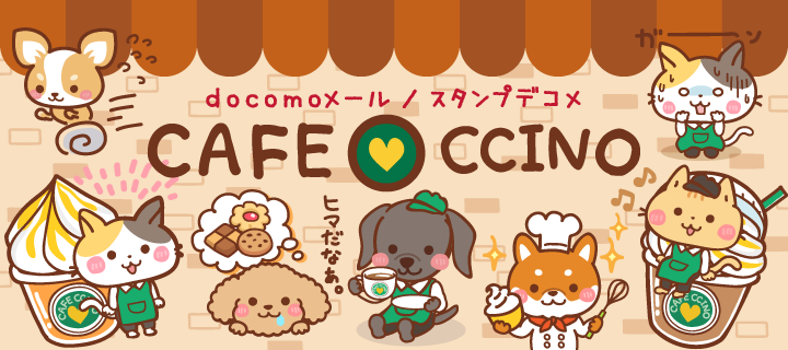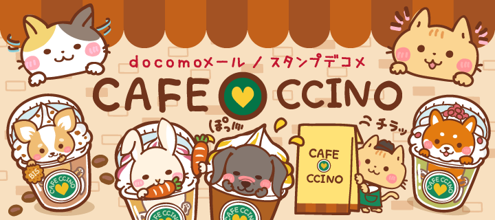 キュートな表情をたくさん集めました★楽しく返信しよう♪家族やお友だちにも誰でも使える可愛い「CAFE♥CCINO」スタンプデコメです!