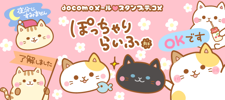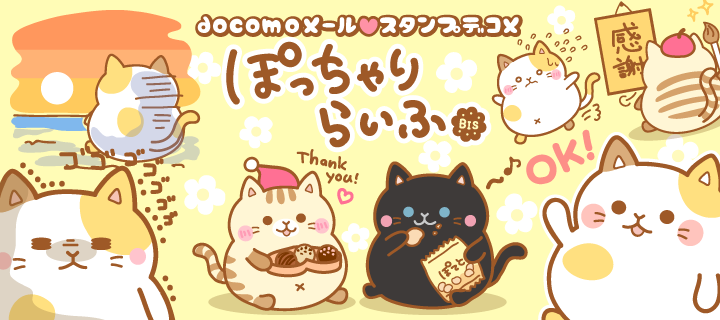 まんまる太ったネコの「ぽっちゃりらいふ」がメールをサポート☆どんな用途でも使えちゃうとっても便利なスタンプデコメです♪