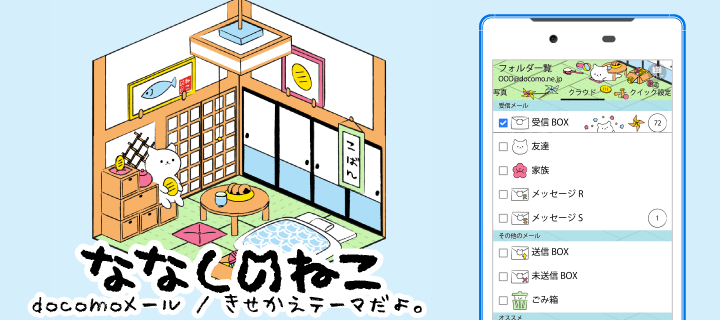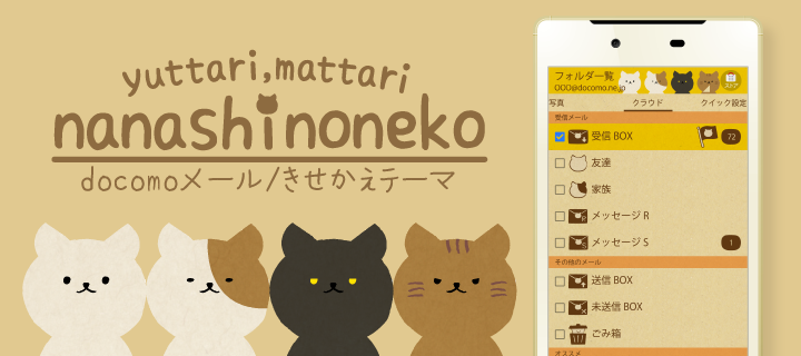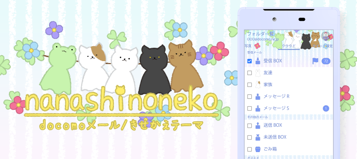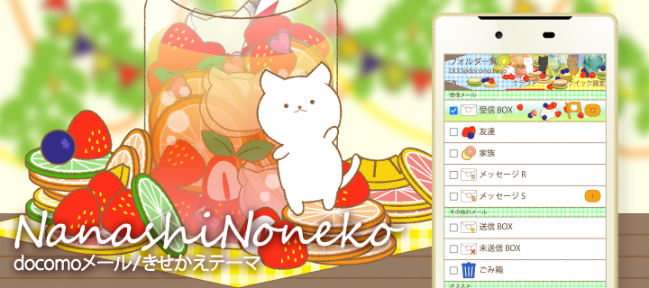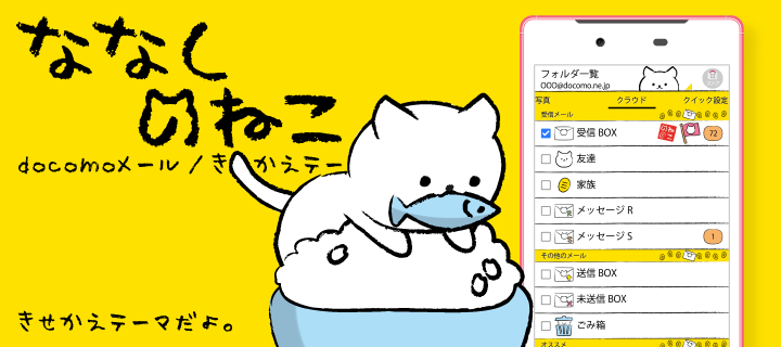 ほのぼの、まったり、シュールな可愛いキャラクター「ななしのねこ」のドコモメールきせかえです!