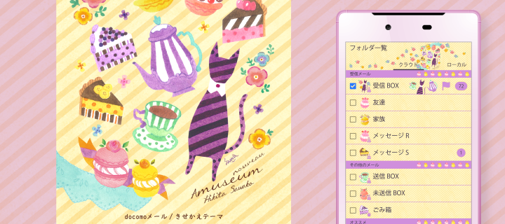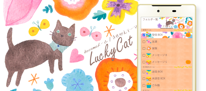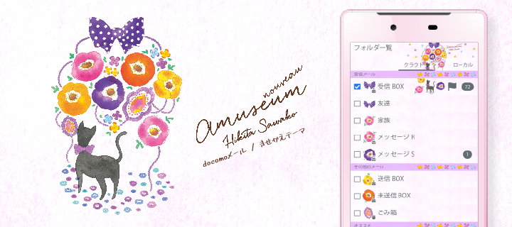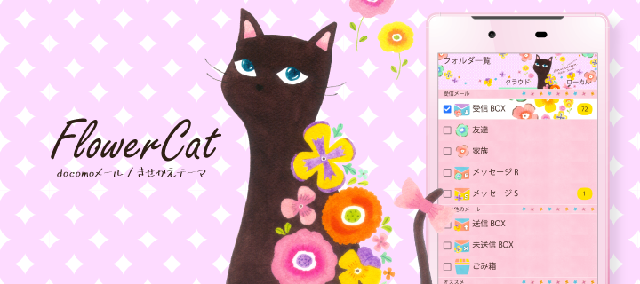 かわいらしいピンク色と、黒猫のきせかえテーマ。