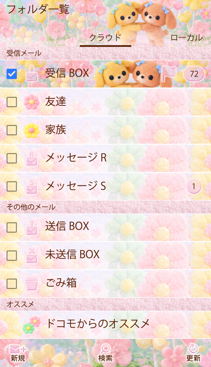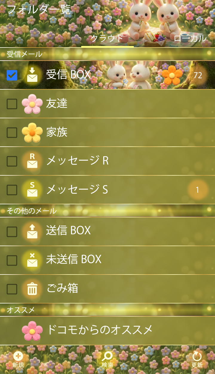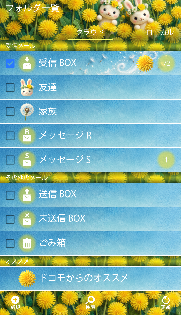春の花々がそっと咲くやわらかな世界をメール画面に。