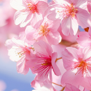 【淡い記憶をなぞる、桜色のレイヤー】澄んだブルーの空色を背景に、ピンクの桜がふんわりと重なり合い、前後ににじむ花びらのレイヤーが、やさしい春の記憶を包み込むように広がるライブ壁紙