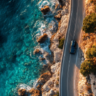 【星降る水辺を舞う、光のバタフライ】深い藍色の夜空の下、虹色の光をまとった二羽の蝶が水辺の上を優雅に舞い、白い薔薇と遠くの灯りが幻想的な夜を彩るライブ壁紙