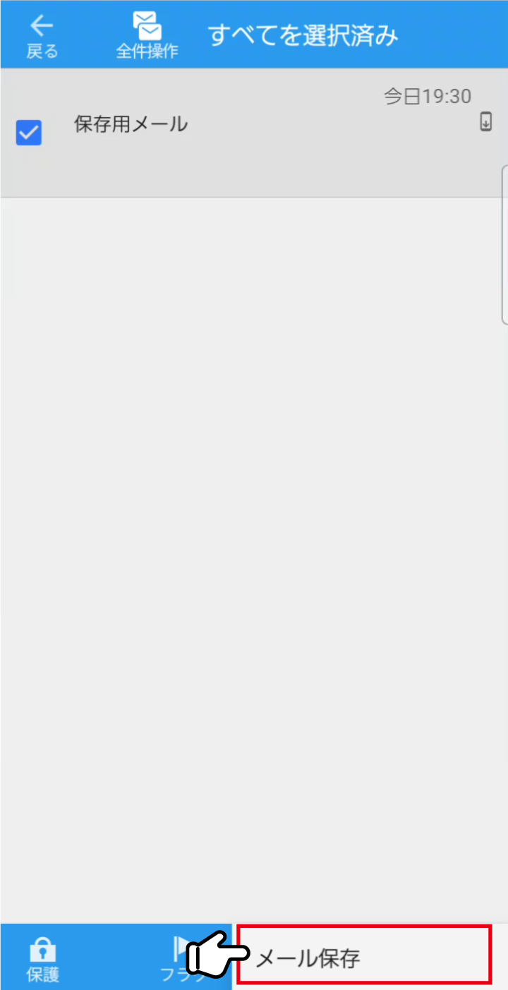右下の「その他」アイコンをタップし、「メール保存」をタップします。
