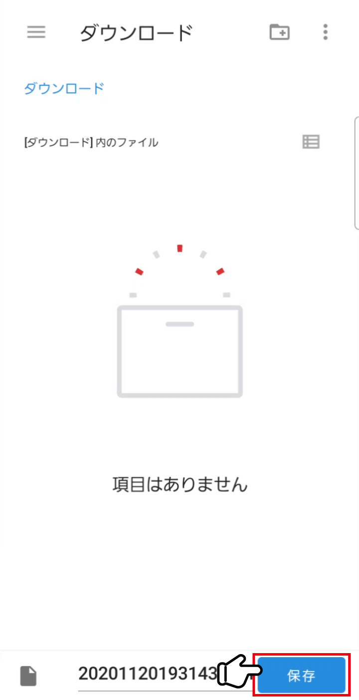 端末内の保存先を確認し、右上の「決定」をタップします。