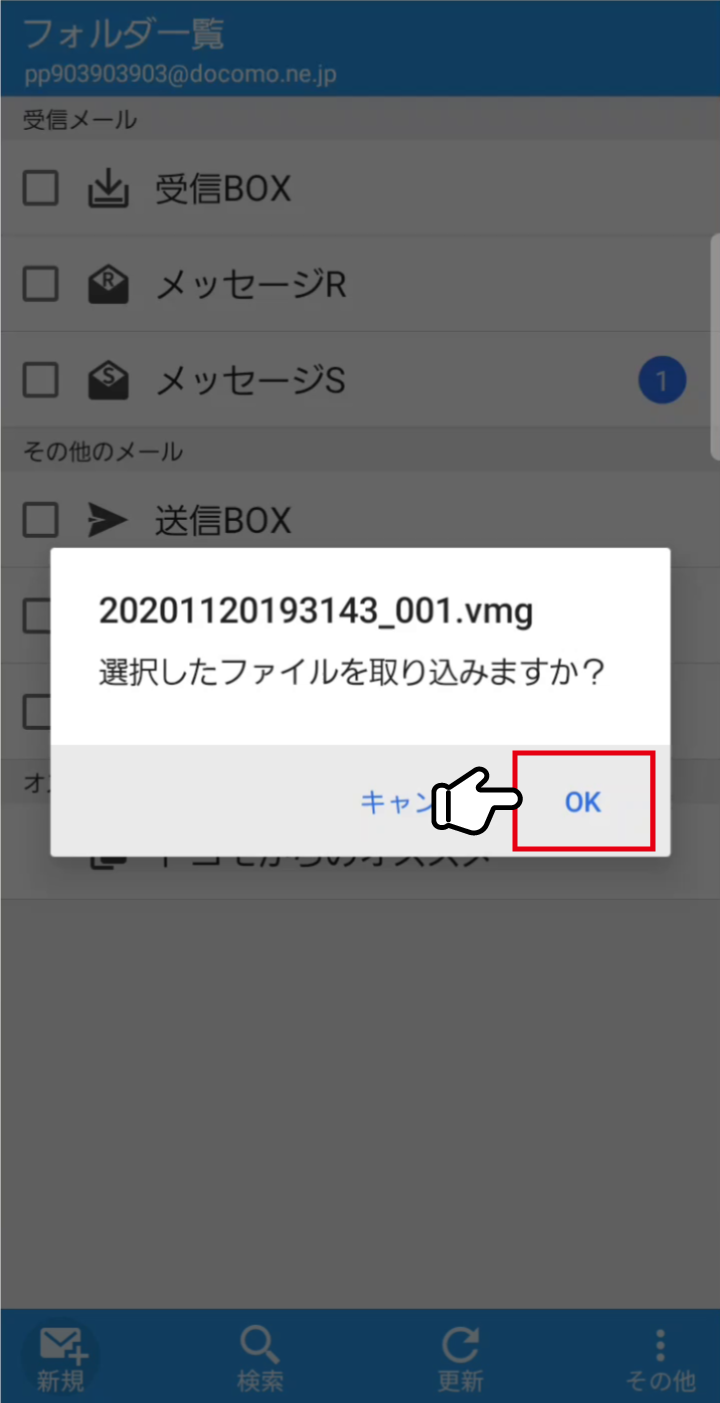 ポップアップ内に【選択したファイルを取り込みますか?】という表示がされたら、「OK」をタップします。