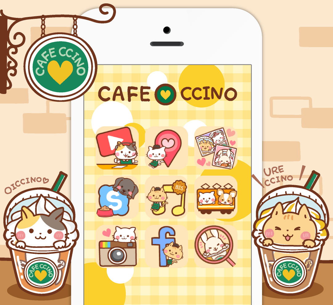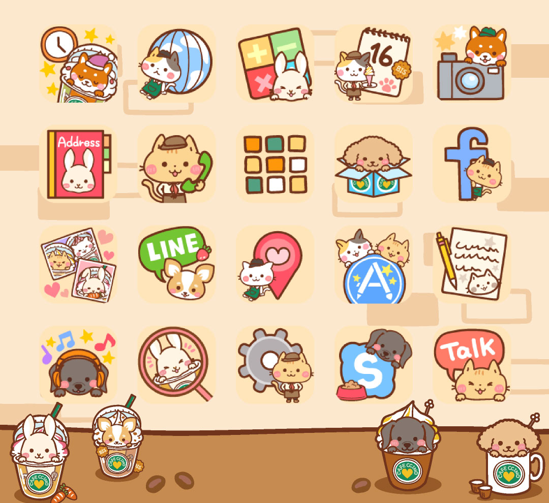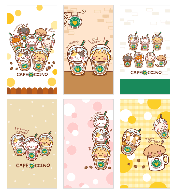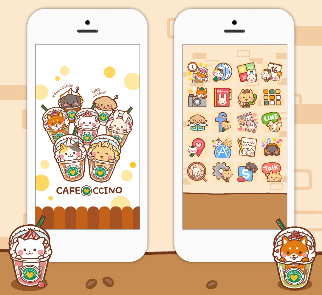 コーヒーの良い香りのするカフェで飼われているペットが店番をしていたら飲み物に入っちゃった!キュートなキャラクターの着せかえだよ♪