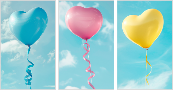 青空に舞うハートの風船。