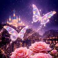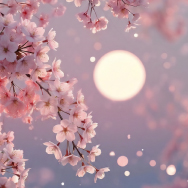 【月明かりにほどける、水辺の桜夜】やわらかなラベンダーの空に大きな満月が浮かび、その光を受けて水辺にしだれる桜の枝がほのかにきらめきながら、静かな春の夜をそっと照らすライブ壁紙