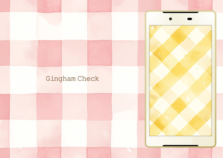 水彩タッチで描かれた温かみのあるパステルカラーのチェックデザイン。