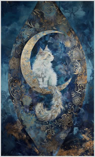 猫と月。金色が差し込む神秘の夜。
