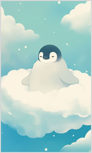 ふわふわ雲でただようペンギン♪