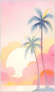 水彩タッチで描かれたやさしい南国の風景。