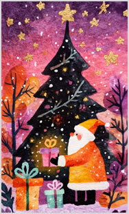 水彩タッチで描かれたクリスマスデザイン。